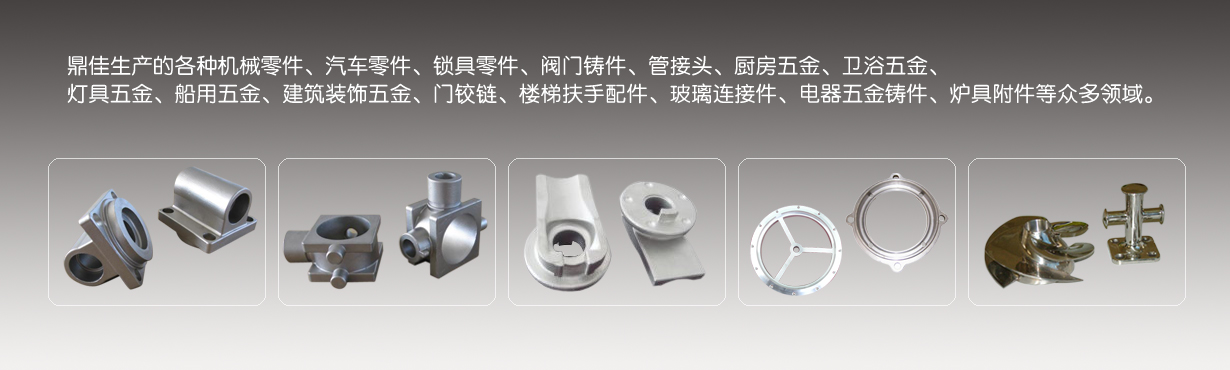 各種機械零件、縫制零件、紡織配件、汽車零件、鎖具零件、閥門零件、管接頭、五金工具、廚房五金、衛浴五金、燈具五金、船用五金、建筑裝飾五金、門鉸鏈、樓梯扶手配件、電器五金鑄件、爐具附件等眾多領域。